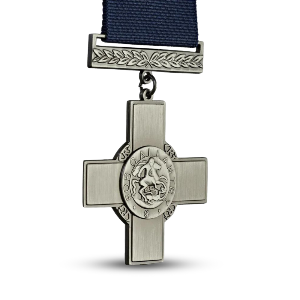 - Design: Features the iconic cross design with St. George slaying the dragon, encircled by the words "FOR GALLANTRY."